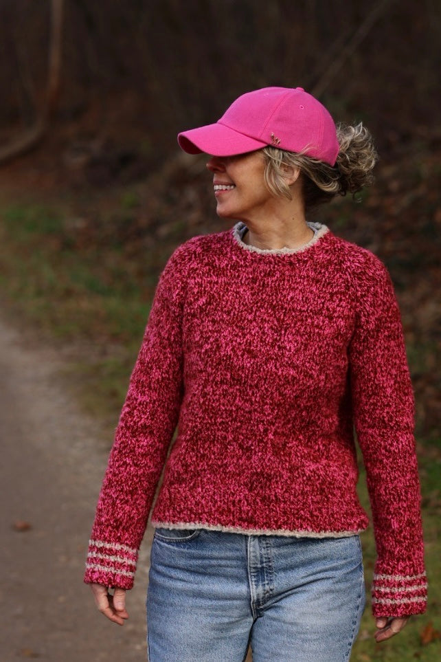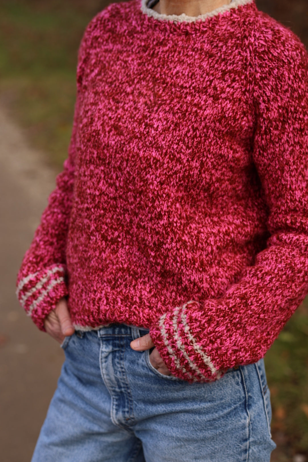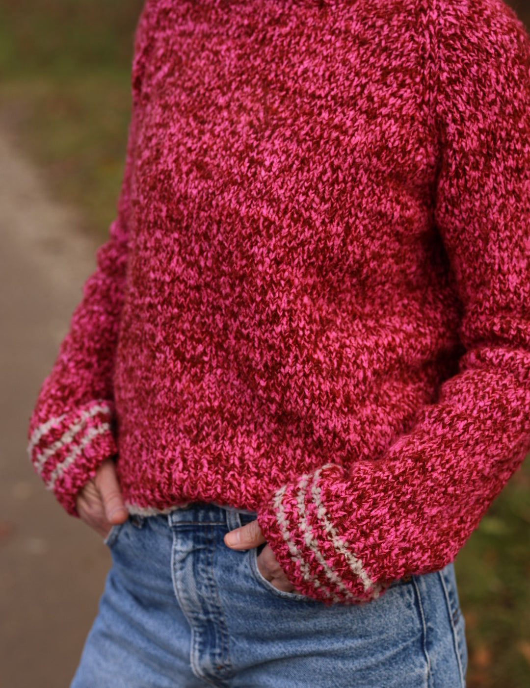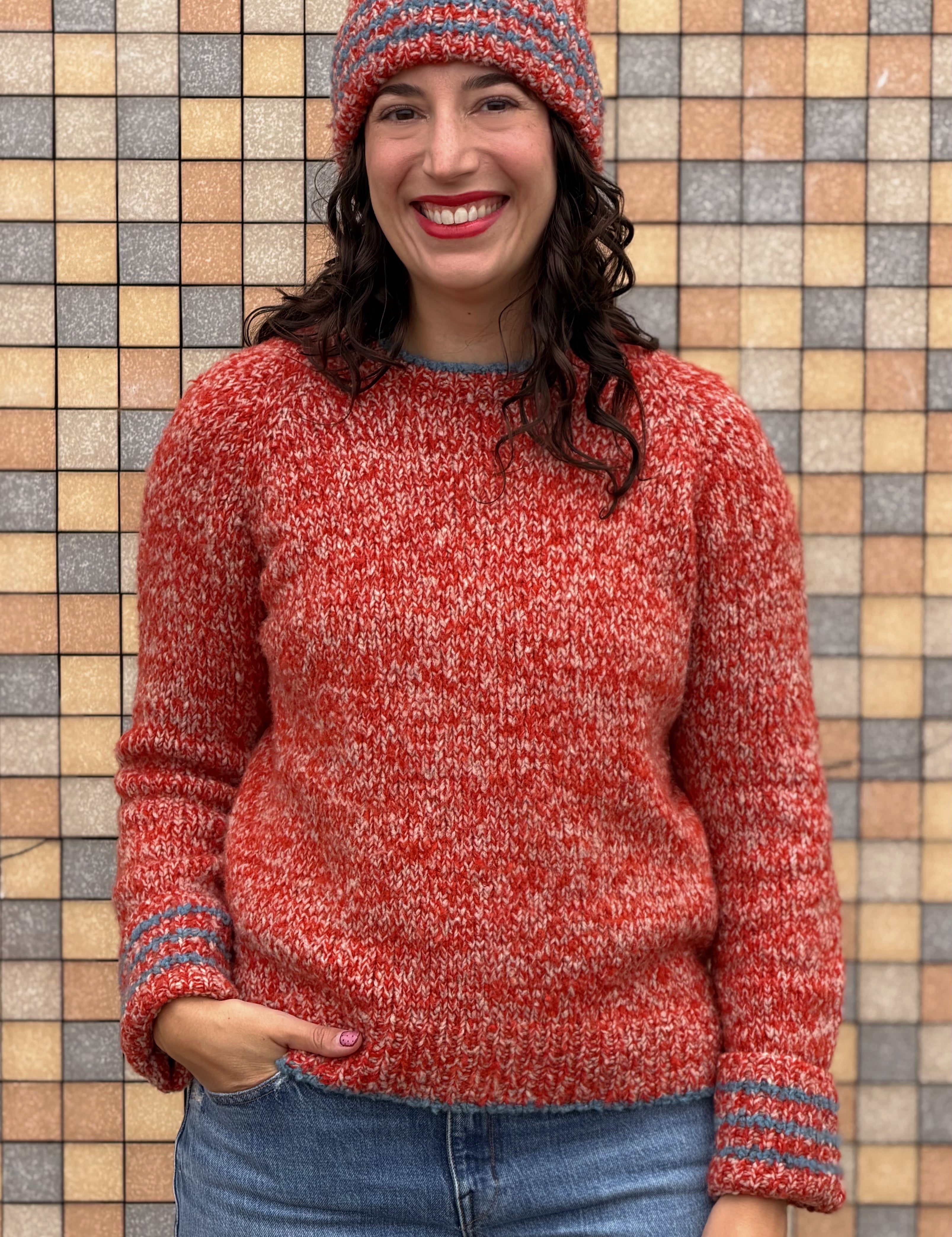 Introducing Old School Raglan! This cozy, throw-on-and-go sweater inspired by the same retro tube socks behind Old School Beanie. Think classic striped tube socks, but reimagined in the dreamiest knit in wearable form. Knit using The Plucky Knitter Pippi Fingering, this raglan brings all the fun: marl your two favorite colors together for the body and sleeves, then add that perfect pop for the stripes and trim. The result? A sweatshirt-like sweater that’s as timeless as it is playful. Designed to be dressed up or down, Old School Raglan is the kind of piece that becomes an instant favorite - effortlessly cozy, endlessly comfy, and ready for whatever your day brings.