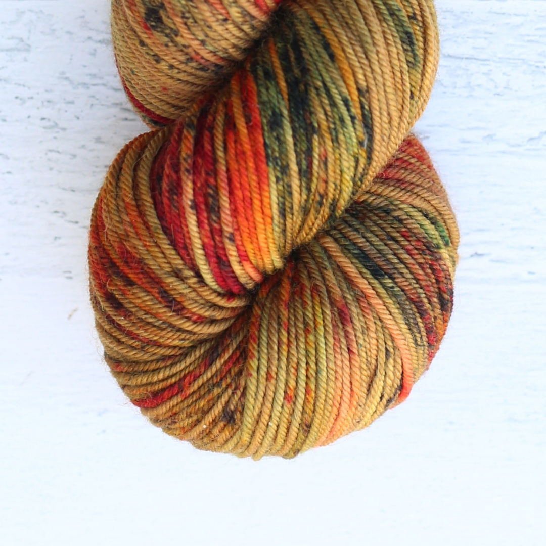 Cabinessence: Amber, copper, moss, orange and (knotty) pine all wrapped up in skein form. Think gold wood paneled nostalgia.