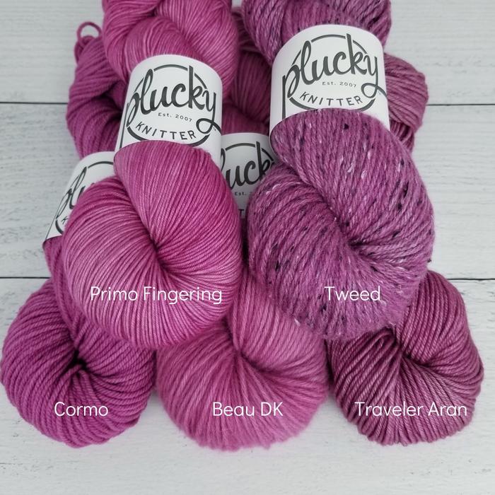This soft cool medium pink can fill most any void. It can be a pop with neutrals, a surprise when paired with scums or a tonal within its own color family.