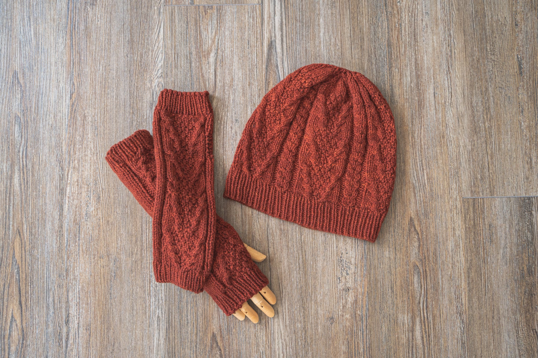 Our newest new hat and mitts are just the ticket to help you brave the elements when the temperatures begin to spiral downward! The cables and rich textures of this matching set tell the world that you are ready for anything you meet on the highway home.