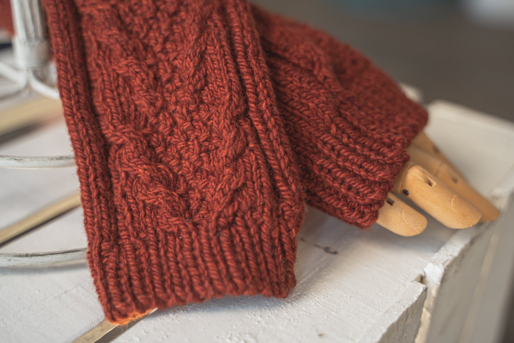 We knit ours on Scholar 2.0, and the stitch definition is positively extraordinary! The pattern contains both charts and written instructions, making it perfect for your knitting style. This is a great introduction to simple cables for the adventurous beginner, and, if you haven't tried cables without a cable needle, this is the perfect place to start!