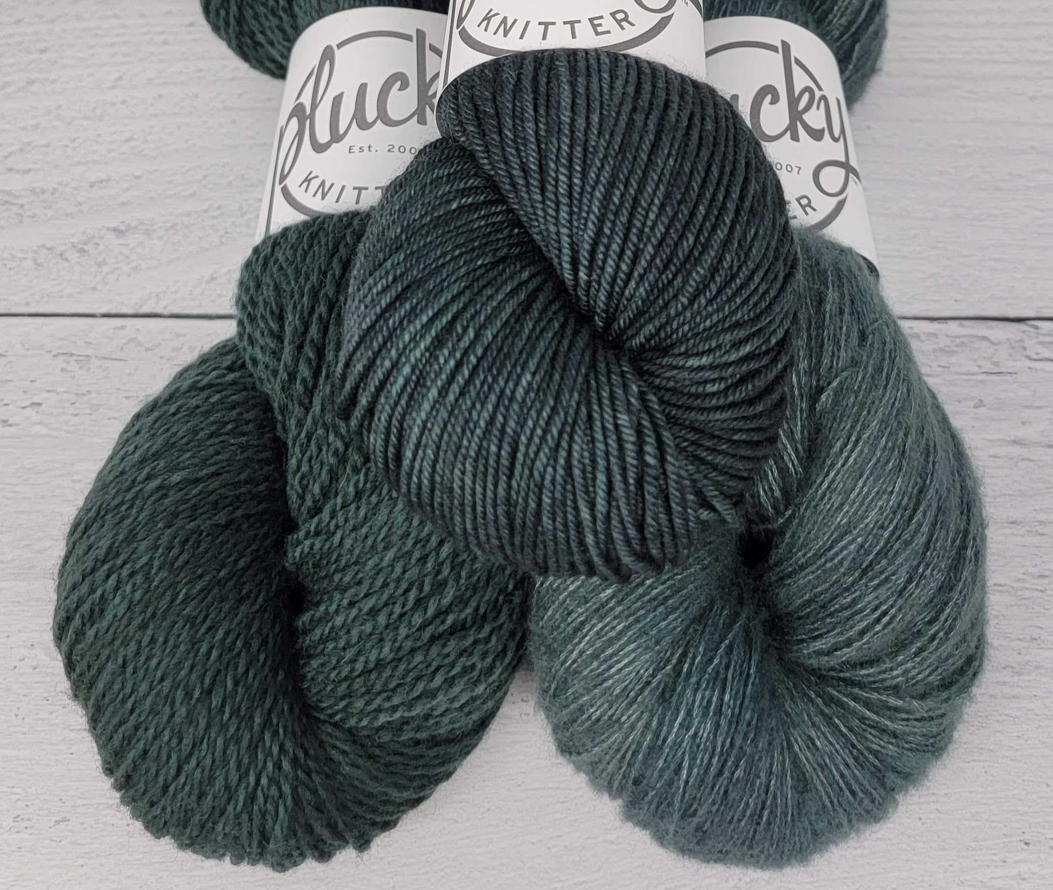 The deepest, darkest forest green with charcoal tones throughout.