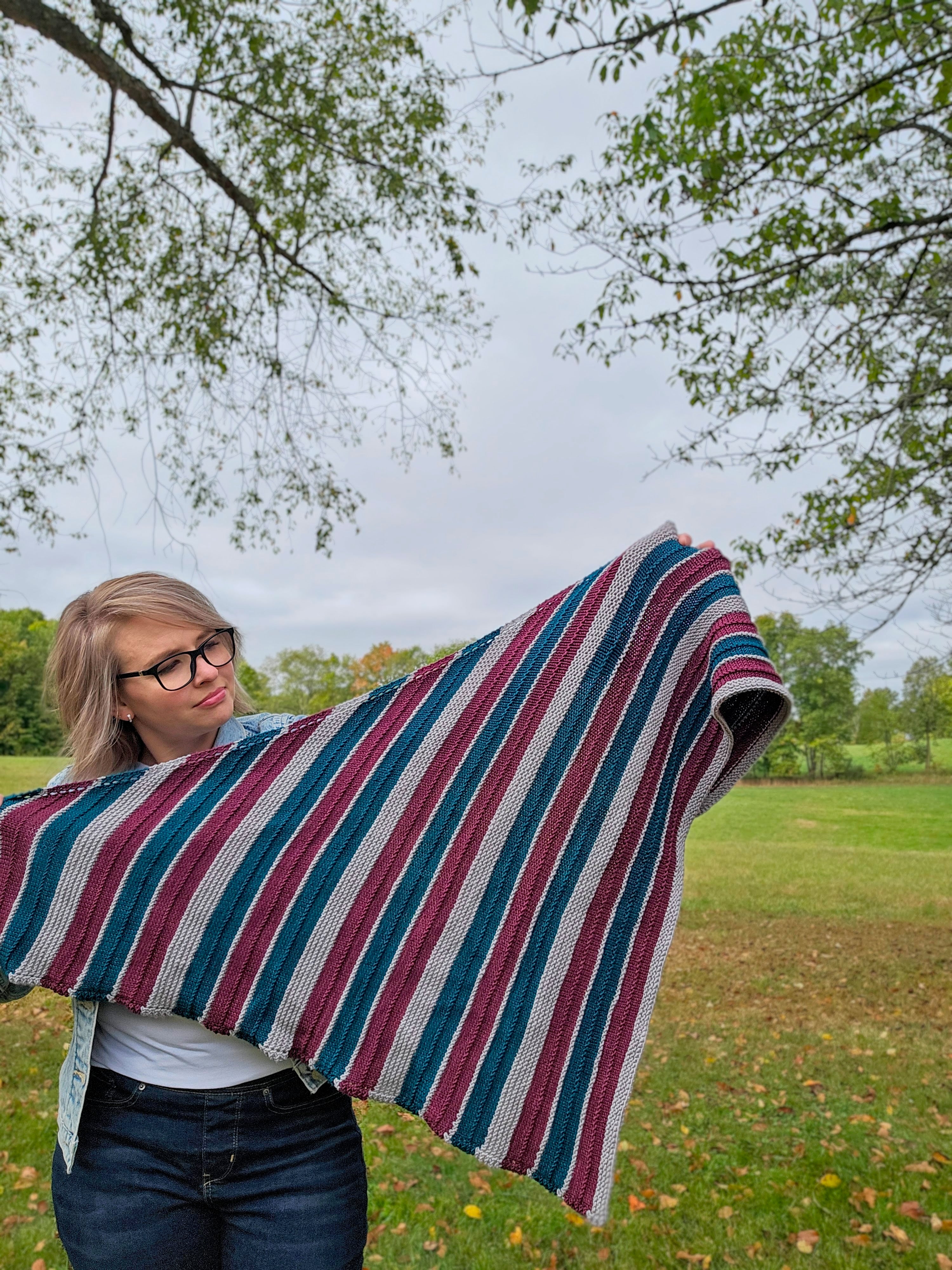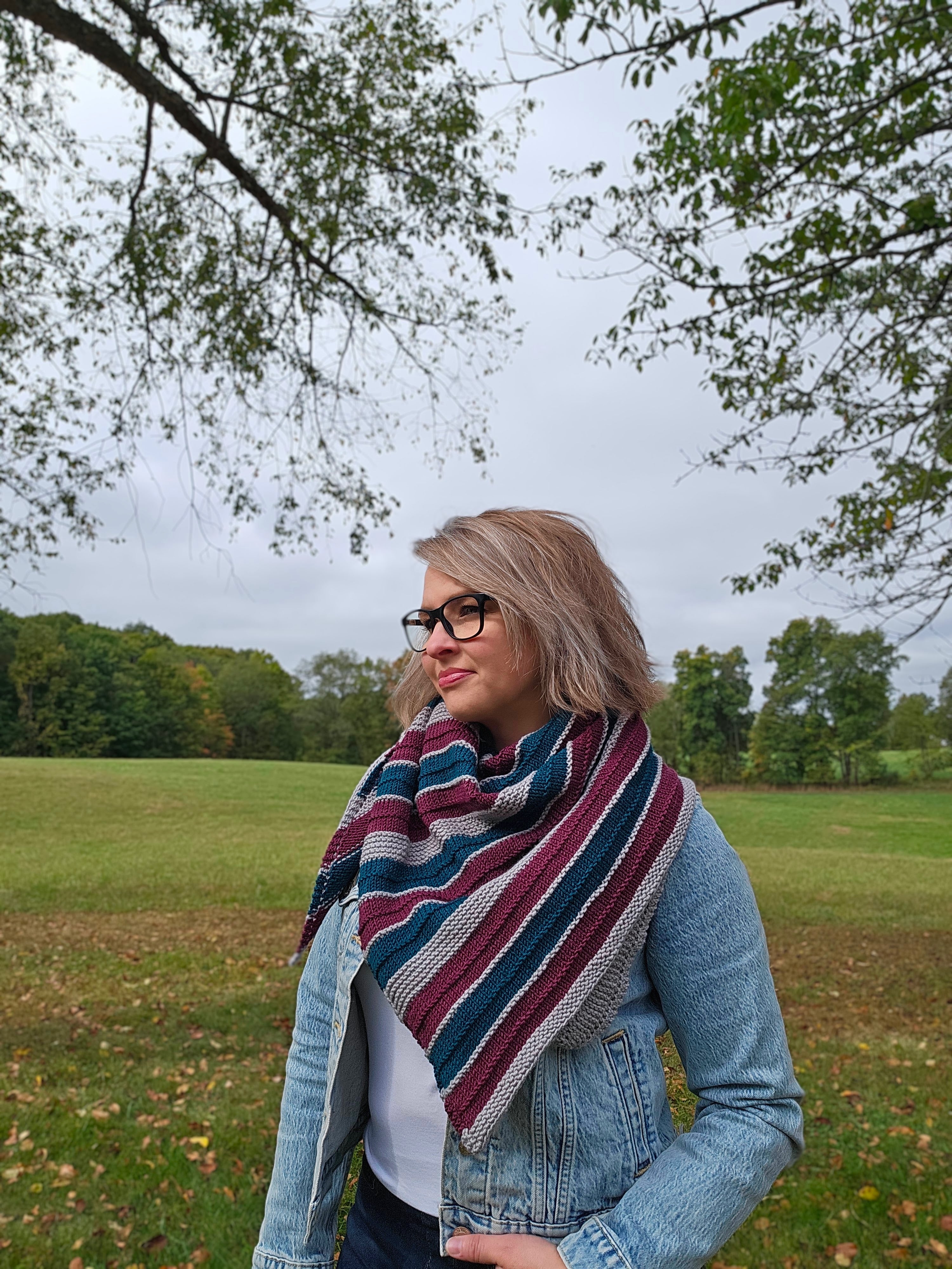 Inspired by the cool, crisp colors of a winter in Michigan, Pine Mountain is a gathering of the pleasing aroma of pine from the blue spruce, the rich flavor of a sugar plum and the chill of lake-effect snow. A perfect reminder of how much we need a simple-to-style shawl that’s easy to make and even easier to wear!
