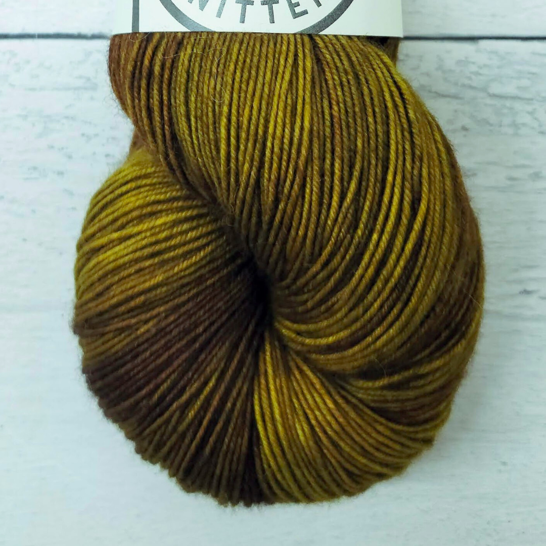 With a base of golden yellow and layered with bronze and a hint of an acid green throughout.